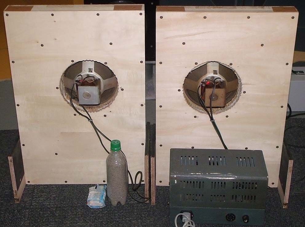 自作砂入り平面バッフル(前後2枚の板の中空部に砂入れてあります)
